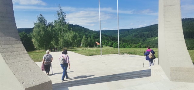 A protože nám počasí přálo, krásně svítilo sluníčko, tak kdo měl síly mohl se projít po cestě k Památníku odboje od architekta Šebestiána Zeliny. Tento pomník na vrcholu kopce za osadou se stal v roce 1975 oficiálním symbolem uctění památky válečných obětí a partyzánského odboje.
